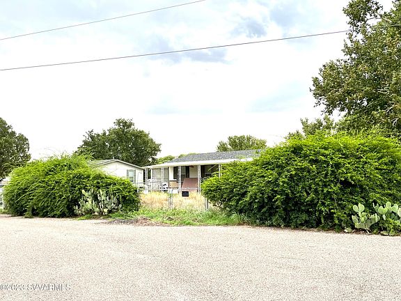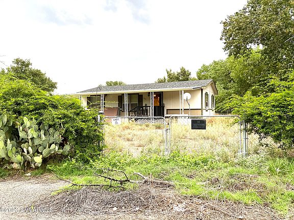 PRICE REDUCTION!!!! 2000 Fleetwood doublewide manufactured home, 940 sq. ft., near clear creek, lush area, large lot .23 acre, perimeter fenced, fenced rear yard, 2 sets of front gates, 3 bedroom, 2 bath, storage shed, 3 nice awnings (front, rear and side) Side awning is used for single car carport, front and rear covered paver patios, rear open patio, rv parking ok, some landscaping, Verde Lakes water, 1000 gallon septic, city maintained paved road, no hoa dues, no homeowners association, washer and fridge convey, Fans in living room and kitchen, propane forced heat, propane kitchen stove, propane water heater, central a/c, property sold as is. Home needs full remodel, but priced accordingly. Home has good bones...