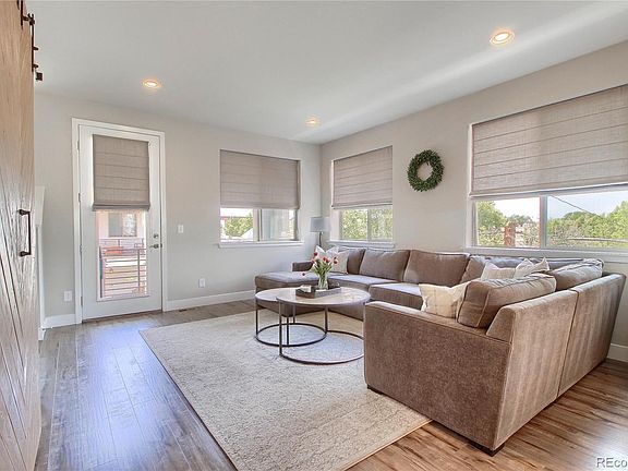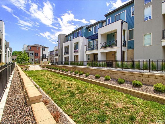 Stunning rowhome in the heart of University Hills. Enjoy the benefits of low maintenance living with an open concept floorplan that is ideal for entertaining and maximizes every bit of living space. High ceilings and lots of windows make for an airy and spacious feel. Tastefully decorated with neutral "cozy urban" high-end finishes that leave plenty of room for customizing to your taste. Other home features include a covered patio, covered deck, three bedrooms (each with walk-in closets) and two and a half baths. Two-car garage with workbench area and custom-built storage shelves. Kitchen has quartz counter-tops, upgraded cabinetry and pulls, walk-in pantry and high-end appliances, including gas stove. First level was custom altered from builder specs to maximize square footage and to accommodate a row of bookcases and a walk-in coat closet but would make for an ideal home office space. This end unit has one of the best locations on the far west end of the complex, with mountain (and sunset) views from the 2nd and 3rd level west-facing windows and deck. The neighborhood has a high walk score and is in the middle of burgeoning redevelopment on all sides. Two blocks to light rail, five blocks to I-25, with many restaurants and shops within easy walking distance. Less than 5 miles each to DTC, Cherry Creek and Downtown make for a perfect Denver location for those that want a quiet, neighborhood feel without sacrificing the convenience of city living.