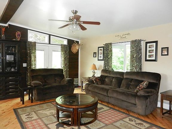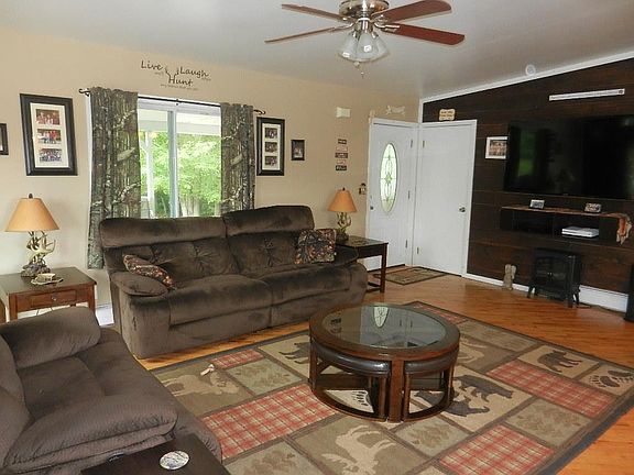 Private, rural living with cable, wifi, & hi-speed internet! 3 bedroom, 2 bath Ranch nestled on 29.69 acres of woods & open fields/pasture. Lots of updates including vinyl siding & windows. Wrap around deck to enjoy view of the pond plus all the sights & sounds of the country. Walk-out lower level features amazing man cave/rec room with bar. Includes 30x96 metal Quonset hut with workshop, water, electric & heat. There are also apple & pear trees, plus a barn if you have designs on horses or livestock. This home is part of the 100% Money Back Guarantee, certain terms & conditions apply.