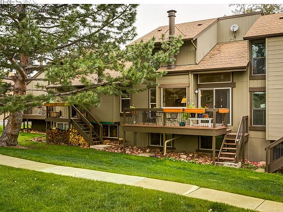 VIEWS! VERDANT OPEN SPACE! MILES OF TRAILS IN S/W BOULDER FOOTHILLS! Picture window & glass doors bring the outside inside. Lush green/mature trees abound. Stylish 2-stry + finshd light/bright lower levl! Nicely updated including newly remodeled BA'S, gorgeous wood floors, custom iron banisters, beautiful quality stained wooden doors! Enjoy eating/entertaining on expanded deck off dining area. Private fenced courtyard has lovely gardens w/sprinklers & spacious new patio. PAST-12/MO/AVE/ELECT=$90 Listing Agent: Linda Whittle Company: RE/MAX Alliance-Boulder Phone: 303-588-4127 Email: lindaswhittle@aol.com