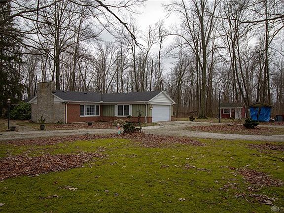 Charming brick ranch nestled in 6.5 acres of mature trees, in Miami East School District. Warm and welcoming entry way opens to the large living room with a wood burning fireplace and large picture windows for natural light. The 3 bedrooms have hardwood flooring throughout. The home offer 2 full bathrooms, newer vinyl windows, two sheds for outdoor storage, and a beautiful gazebo.
