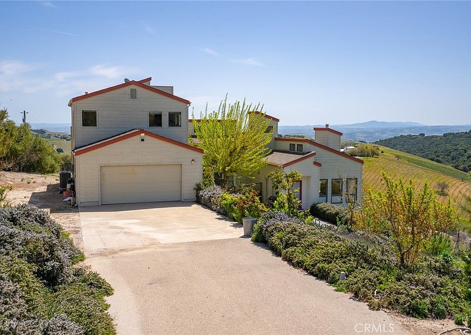 Vineyard estate located on Peachy Canyon Road in desirable west side Paso Robles! This one of a kind contemporary architect designed home sits at the top of the 14 acre property offering panoramic vineyard views. Every room has expansive windows taking full advantage of the beautiful surroundings. The living area is bright and airy with high ceilings and a wood burning stove. The kitchen offers plenty of storage with unique pantry doors that came out of an old schoolhouse. The three generous sized bedrooms each have their own bathroom. Enjoy views for miles from the large patio balcony on the top level. Approximately five acres of grapes offer an opportunity to make your own wine or sell grapes to surrounding wineries. Plantings include Counouise, Primitivo, Tempranillo, Tannat, and Negrette. Schedule a showing and live your wine country dream!