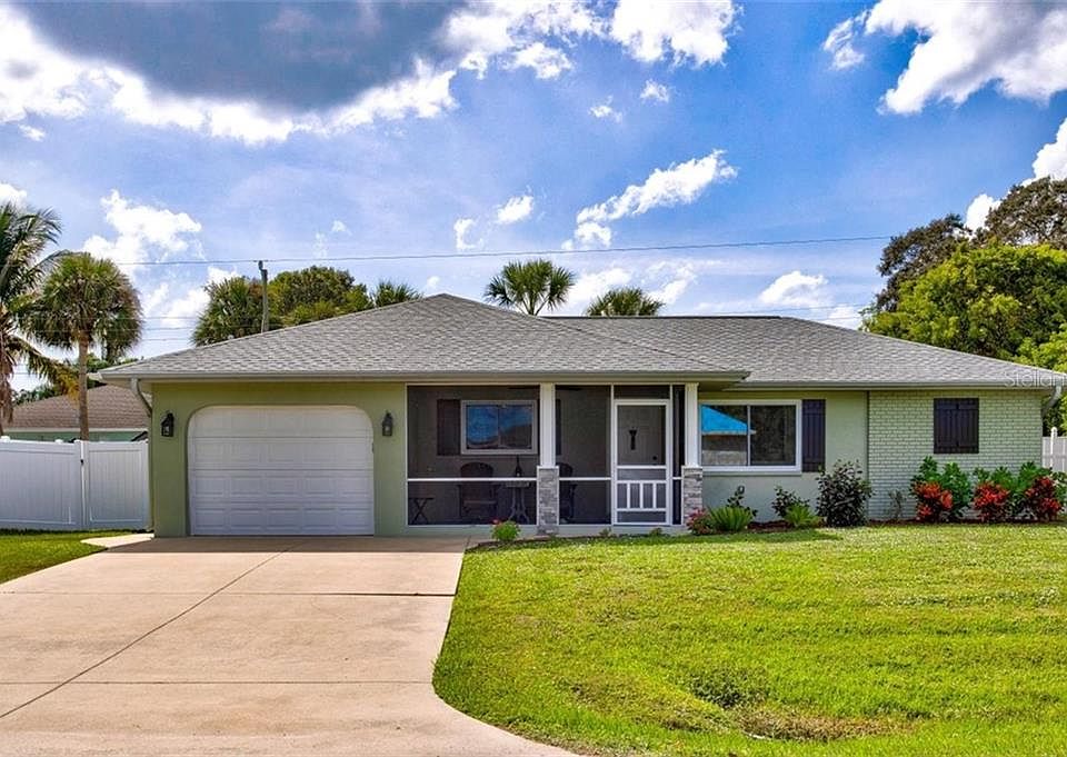 Welcome to this meticulously maintained completely remodeled split floor plan home featuring 2 bedrooms, 2 bathrooms, and a 1 car garage. Upon entry, you are immediately greeted with laminate plank flooring matched with freshly painted walls and vaulted ceilings in this open and airy layout. This recently updated kitchen features adjustable wood cabinets with soft close drawers, hardware, granite counter tops, stainless steel appliance package, large storage pantry with barn doors and breakfast nook. The master bedroom offers neutral tone carpet, spacious walk-in closet, and a remodeled private bath featuring ceramic plank tile flooring, with tile shower, and wood cabinet vanity with stone counter top. The guest bedroom also offers neutral carpeting, jack and jill access to guest bath which features ceramic plank tile flooring, tile shower, and wood cabinet vanity with stone counter top. French doors lead out from the living room to the newly screened lanai overlooking into the spacious and private back yard with stone fire pit, perfect to sit back, relax and enjoy the picture perfect Florida sunsets. Located within minutes to the pristine Florida Gulf beaches, easy access to I-75, Venice Island featuring Downtown Venice Main street & all of its arts and culture!