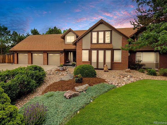 New price on this gorgeous custom home in a quiet cul-de-sac on .50 acre lot, one of the biggest in Marston Slopes! This home has been lovingly maintained with remodeled bathrooms, kitchen and basement. As you enter, the formal dining room greets you right inside the foyer with a long granite buffet. The eat-in kitchen has a large island with granite countertops, built-in microwave, 36-inch Viking gas range and Electrolux refrigerator and dishwasher. Skylights ensure there is an abundance of light throughout inviting you into the large family room with a stone fireplace and living room where a large bay window overlooks the front lawn. The sunroom is a joy to spend time in and provides an additional 415 of square footage overlooking the expansive backyard complete with water feature, covered patio and huge deck. Upstairs you will find two large bedrooms and a bathroom with two sinks. The 5 piece en-suite primary bedroom is on the main floor looking out to the backyard. The finished basement offers a huge den to host gatherings, a large bedroom and a game/workout room. You will also find a bonus area with cabinetry, a wine rack and a second refrigerator. Additionally in the basement is a storage room with lots of shelving. Between the attics, the basement and the garage, this house has many storage options. Property has been professionally landscaped. Excellent location off of Wadsworth and Quincy gives easy access to Hampden so you can be downtown or in the mountains very easily. This home is warm and inviting and offers many luxuries, come take a look!