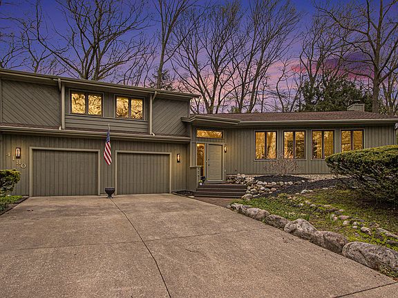 Woodbridge Hills, Portage Schools walkable pocket neighborhood. The expansive living area of this multi-level contemporary home is perfect for entertaining and enjoying life. There are gorgeous hardwood floors throughout. The custom kitchen, family room, dining room, and living room, all share gorgeous hardwood floors that glow in the light. The remodeled kitchen is truly custom and high-quality. The warmth of the wood-burner Is shared by this great room. Plenty of living room here! Large rec room in the basement, primary suite with private bath and walk-in closet +4 additional bedrooms. many recent improvements and features including Generac, custom lighting, windows amd more!