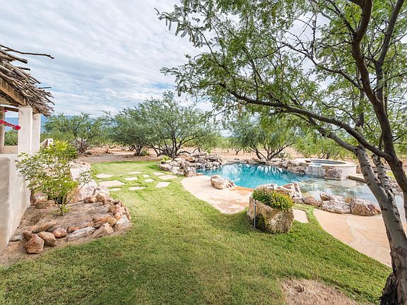 Beautiful Horse property in highly desired Montana Vista. This charming treasure is sheltered by lush desert trees and low care desert plants while still providing spectacular panoramic views of the sunset, mountains and valley view from every direction and windows. If you are looking for a cookie cutter home, this is NOT it. This 2158 sf home sits on 4.95 acres. Entire property is fenced with barbed wire plus large Arizona Room. Large coral for horses with 3 stall horse area. Custom touches throughout that add to the charm. The crystal clear swimming pool perfect place to cool off and admire the beautiful Sonoran Desert. This home is the perfect blend of desert living and excellent location. Near Madera Canyon, Contiental Shopping plaza, Green Valley hospital, Tubac, and I/19.
