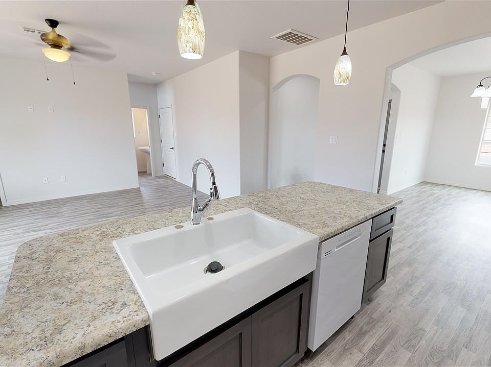 - Kitchen Featrs: Gas Range/Oven, Tile Flooring, Solid-Surface Countertops, Microwave, Garbage Disposal, Dishwasher, Pantry