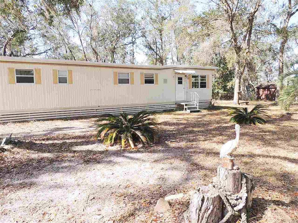 Peace and quiet awaits you! Nearly 1/2 acre on private dirt road. Property is 16' above sea level. Metal roof-over single-wide mobile home. Reverse osmosis water filtration system in shed. There's a 2nd non-conforming room which is 8'x7' with area for a closet (old furnace could be removed). New vinyl flooring in kitchen/dining area and living room. Immaculate. Near Moultrie Plaza for shopping with Publix, post office/bookstore, restaurants, etc.