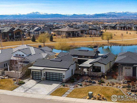 Contemporary Elegance with sweeping views of the pond and Mountains. Open and grand with the outside and inside complimenting each other and flooding the home with light and ambiance. Enclosed courtyard in front and partially covered back patio with fireplace, firepit, outdoor kitchen, water feature and privacy. Main level features 2 en-suites plus study and coffee bar--lower has dedicated exercise room, 2 additional beds plus wet bar and recreational room. Enjoy everything Harmony has to offer, golfing, salt water pool, restaurant, pickle ball and a unmatched style of living.