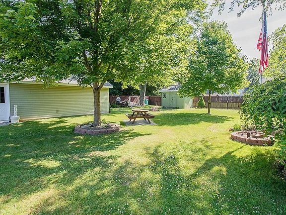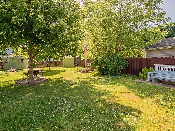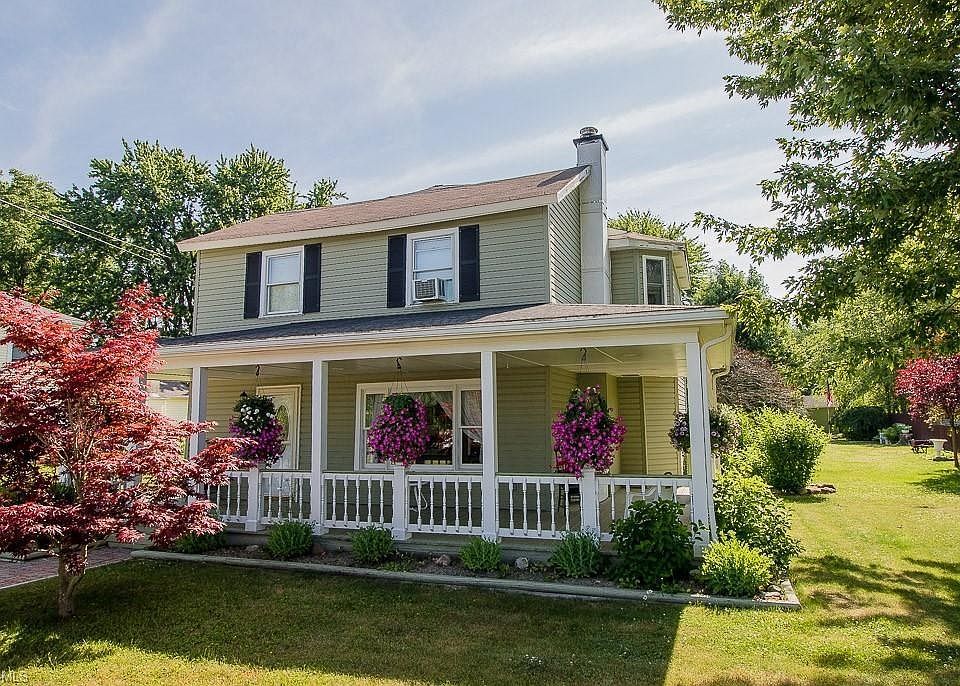 Century home in Perry Village that has had 3 major additions over the years increasing the square footage to approximately 1828. 32x21 wrap around front porch 2007. Eat-in kitchen addition with cathedral ceiling tile floors and closet that has access to the concrete floor crawl space. There is a pass thru window to the kitchen and all appliances remain. Oversized formal dining room has bay window with seat 2005, living room has wood burning fireplace and ceiling fan. Separate hallway leads to original first floor bedroom suite and is presently used as an office with built-in storage and 8x7 laundry room area plus full bathroom. Newer L-shaped staircase leads to 2nd floor which has a back bedroom and bathroom addition 1995. Plus, there are 2 more bedrooms one being the master bedroom with walk-in closet and flooring is ready to be carpeted. Rear deck is 28x12 and leads to over oversized back yard and 20x29 garage with furnace, drywalled, electric, workbenches, lockers, file cabinets all remain, 2 man doors-side and back. 2 storage sheds also in backyard. Home warranty included. This is an estate sale and being sold as is.