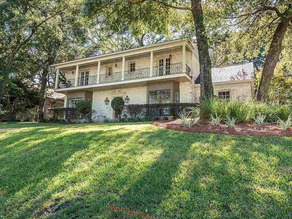 Elegant 2-story brick home on ¼-acre corner lot. This home has a sense of sophistication thanks to the unique architectural elements, but still embodies a familiar warmth with its New Orleans-style charm. Designed/custom built by reputable architect and builder with exceptional craftsmanship/space optimization. Centrally located in prestigious East Hill neighborhood but still within 2 miles of airport, hospital, mall and state college; 10-minutes from historic downtown and bay front. You'll be delightfully greeted by the formal foyer boasting a curved hardwood staircase and statement chandelier. Beautiful custom eat-in kitchen flooded with natural light from the original bay windows; granite counters, stainless steel double oven, five-burner island stove, stylish subway tile backsplash. Formal dining room is adjacent to kitchen and perfect for larger gatherings; features classic accents like traditional crown moulding, ceiling medallion, and built-in China cabinet. Family room/den displays superior craftsmanship with continued crown moulding and wood-carved mantle over the wood-burning fireplace. The serene views of the European-style courtyard can be enjoyed from almost anywhere in the home. Four bedrooms upstairs with one bedroom downstairs; room on first level can easily be converted into an office or bonus room! Carpeted second level has been well maintained and offers spacious bedrooms/bathrooms, all with access to front balcony overlooking Bayou Texar. Double vanity in both guest and master baths. Master bedroom has both a beautiful view of the courtyard in the back and the front balcony is the perfect place to enjoy morning coffee. Master walk-in closet provides ample storage. Two new AC units have been recently installed, as well as Nest thermostats and Nest camera system. An oversized carport that provides ideal parking as well as additional storage. This house is stylish, conveniently located, and ready for its next owner!
