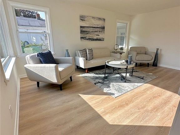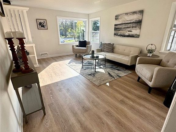*Delayed Negotiations until Wednesday 10/11/23 @ 10am* Gorgeous redone contemporary ranch. Entering you will find yourself in a large living room with all new high end vinyl replacement floors, white shaker kitchen with quartz counter tops and ceramic backsplash, eat-in area with sliding door to deck and fully fenced yard. New bathroom with floating vanity, new soaking tub and fixtures. This home lives larger then it looks with an additional 140 sq/ft breezeway perfect for flex space, as well as approx. 500 sq/ft finished lower level perfect for entertaining, kids play area of hobby space along with new half bathroom. Mechanically this home is virtually new: new 30 year architectural roof, vinyl replacement windows, new furnace and hot water tank, new garage door and exterior doors, as well as new electric service. Move in and enjoy just in time for the holidays. Located in the Greece School District.