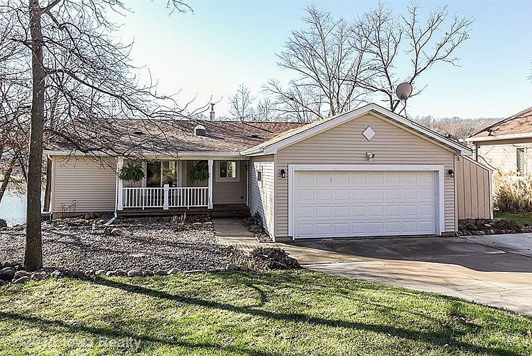 Honey start the car!!! Seize the opportunity to own this immaculate, well-loved waterfront beauty. This one-owner, three bedroom walkout ranch with vaulted ceilings is in impeccable condition. Pleasing neutral décor throughout. The cozy main floor family room features STUNNING lake views that will make you feel like you are at a vacation resort. Beautiful fireplace with a gorgeous Vermont Casting insert with fan which can provide supplemental heat if desired. Very low utility bills. Newer tile flooring in kitchen. The walkout lower level features a second family room with gas fireplace, a forth non-conforming bedroom, a three-quarter bath and ample storage. Southern exposure floods the entire home with natural light. This property has a relatively flat lot, beautiful landscaping, it's own beach and a dock. 2X6 construction. Main floor laundry. Split bedroom plan. RV Parking pad. Home warranty included. Don't miss this exceptional home!