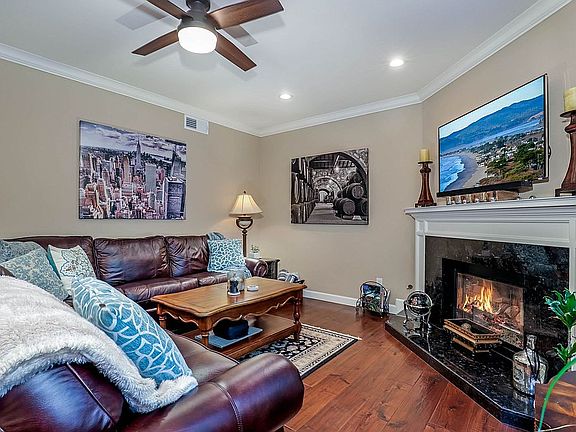 Stunning home in desirable Portola @ Gale Ranch. Extensive remodeling with gorgeous wood flooring, updated kitchen & bathrooms. Kitchen features stainless steel appliances (including built-in refrigerator & double oven), granite counters & white cabinetry. Soaring ceiling in living/dining combo. Shutters, crown molding, attractive light fixtures & ceiling fans. Ideal lot with no visible house behind, and no house in front. Large patio with low maintenance. Abundance of storage space in garage. Views of hills and even a hint of Mt Diablo. Award winning schools, trails, parks and convenient location to walk to shops and restaurants. HOA includes front yard landscape maintenance (and watering) and community pool. Built by Shapell (former Model Home). A special place to call home!