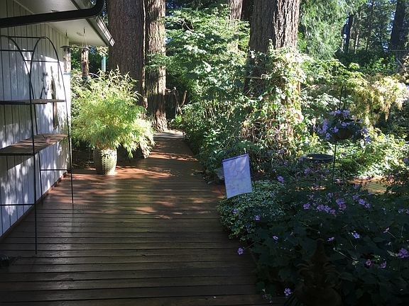 Remodeled home with single-car garage, large yard, raised-bed garden, mature fruit and fir trees, and native plantings. Paved circular driveway with off-street parking places. Updated stainless steel dishwasher and natural gas range and oven in 2018. Gas water heater and gas fireplace. Hardwood floors in living room and bedrooms. Reroofed in 2013. New windows in 2012.