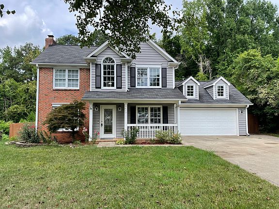Adorable rocking chair front porch on this cul-de-sac home with a fenced, flat back yard that backs to trees for privacy. Formal dining room was enclosed with French doors for the perfect at-home office. Pantry was expanded to hold lots of snacks perfect for the back yard BBQ. Kitchen cabinets were previously upgraded and include soft close hinges. Large primary bedroom offers three closets ready for all four seasons' clothes. Garage has extra storage closets to please any DIY project challenger. Quick access to I-85 allows a short commute into uptown Charlotte with plenty of shopping and restaurants nearby. Owner pays HOA Non refundable pet deposit $350@