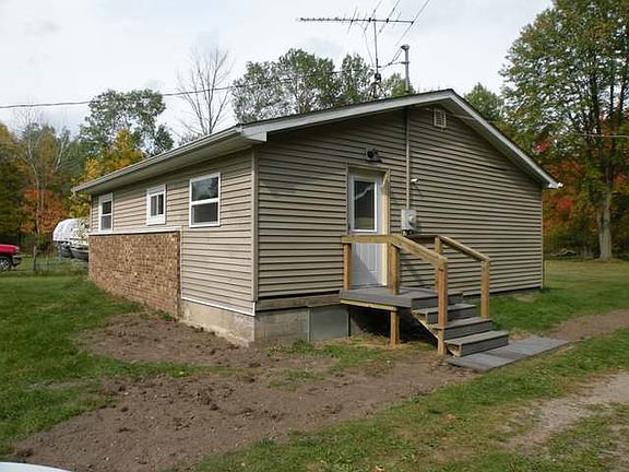 This cutie's interior was completely stripped to the studs, and seller had new drywall, new insulation, new kitchen, new bath, and easy-care laminate flooring throughout installed. This 2-bedroom ranch with its county sitting is on 1 /2 acre lot and is close to town on a paved road. Large 24x30 detached garage with concrete floor has plenty for room for your workshop and vehicles. This would make a great starter or retirement home.