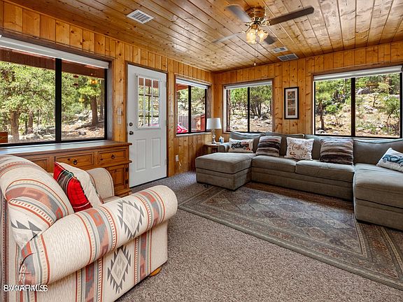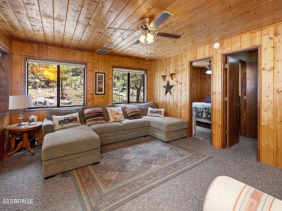*ESCAPE THE SUMMER HEAT!* Charm & authentic cabin character galore, complete with knotty pine paneling inside! This 3 bedroom/3 bath home is the perfect getaway AND (or) AirBNB (with a separate upstairs apartment). Home includes *ALL* furnishings (including a large murphy bed) and is ready for you to move right in. Enjoy the PEACE & QUIET--get your fill of the wind blowing through the ponderosa pines, artistic boulders/scenery, friendly deer, and birds collecting seeds from the many feeders. Three large & well-maintained deck spaces for enjoying the outdoors, several areas for storing equipment & toys to enjoy nearby Lynx Lake and the numerous hiking trails throughout Walker. Home has its own producing well with fresh mountain water and propane gas heating. Only 3/10ths of a mile off paved Walker Rd and includes extra an extra lot--all adjacent to National Forest. What are you waiting for? Make your dreams of owning your own Prescott cabin come true before summer ends.