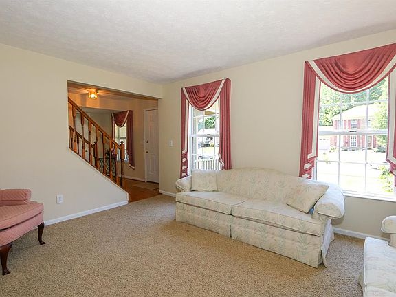 • Dining Room Feat: Chandelier, Chair Rail, WW Carpet, Window Treatment
