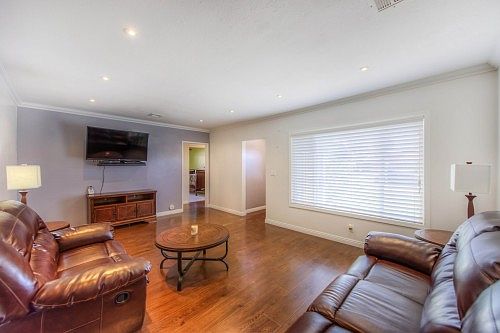 Move right in to this charming 4 Bedrooms 2 Bathrooms ranch style home boasting with upgrades. This home offers 1,473 sq ft of living space on an oversized 7,405 sq ft lot. Enter the house to a welcoming living room with new DuraBlend laminate flooring, scrapped ceiling, crown molding, baseboards, recessed lighting and designer paint. Beautiful modern kitchen which includes maple (soft closing) cabinets, granite counters, designer backsplash, S/S appliances, and an osmosis system. The kitchen opens to a spacious dining area. Upgrades include: newer double paned windows and glass slider, new front door and security door, newer window coverings, blinds & shades, recessed lighting, crown moldings and baseboards, new water heater, forced heating and AC, ceiling fans and fresh paint, & newer carpet in three of the bedrooms. The property has a newly paved front porch, new lights, front rain gutters and sprinklers in front and back yards. Two car garage with laundry area, a fool top door and a new automatic door opener. Pool size back yard has new wood fence, a covered patio with fan, and a large dog run. Walk or ride your bike to Don Hunt Skate park and community center - a sports field, playground and pool.