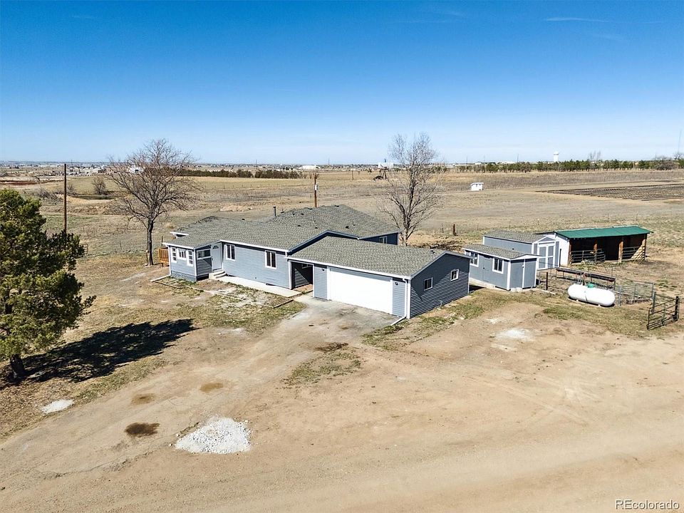 Beautifully remodeled 1969 farm house. Panoramic mountain views of the front range. 4 bedroom, 2 bathroom ranch home. 2 car oversized attached garage. Great setup for horses or small business. Horse stable with 3 stalls. ***Seasonal pond in the Summer*** New Roof, New Windows, New garage Door.