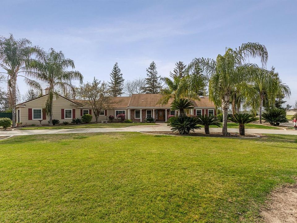 Live and Play in your very own Country Park, just minutes from the city of Dinuba. Great home for the active family and an amazing set up for entertaining! 2.78 Acres of gorgeous matured landscaping with a 2600 sq ft main house, 1200 sq ft guest house, and an ultimate back yard with a tile floor, covered patio, outdoor Kitchen/Brick BBQ, full size tennis court, and over an acre of lawn. This huge back yard is perfect for family fun, holidays, or little league practice. Don't let the evening slow you down, commercial lighting will keep it going on the tennis court or on the grass field. Main home is 2600 square ft. 3 berm, 2.5 ba, office , formal living room with coved ceiling and wood beam and fireplace, formal dining rm, & family rm., Marble tiled floors, granite counter tops 1200 sq. ft. guest or in-law house with entry doors, second home includes 1 bedroom, living room, office, kitchen & full bath, laundry hook up and RV Parking garage.