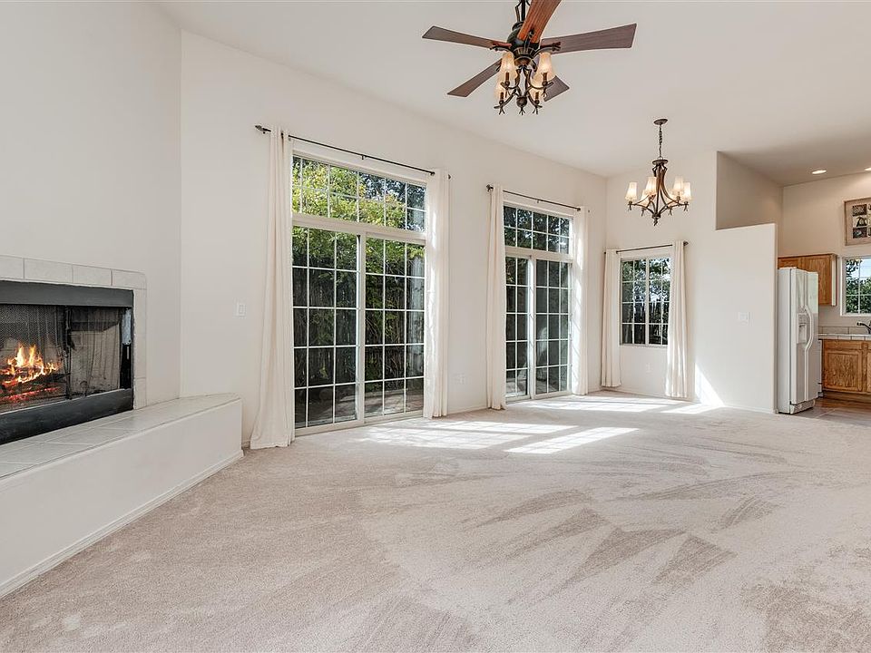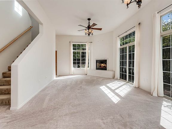 An abundance of natural light pours through well-placed paned windows throughout this 3 bedroom 2 bath home in the Nave Ade subdivision. The light and warmth are reflected in the neutral color scheme in the open living, dining rooms and kitchen, all with high ceilings lending to the open, airy feeling. In the living room, the clerestory windows give added light and dimension and the large fireplace adds to the ambiance on cold winter nights. Relax in the first floor master suite and enjoy the luxurious master bath or step out onto the patio to escape the bustle. The bright kitchen has wood cabinetry, tile countertops and floors. On the second level you'll find 2 bedrooms with one full bath. One of the bedrooms has a private balcony. Recent stucco, interior paint, carpet and window treatments are a few of the improvements that add to the appeal. Tucked away on the edge of the neighborhood, open space and walking trails are just a stone's throw away. With shade trees and landscaping in the front and back yards, the setting is serene yet close to shopping, dining and a nearby park. With an attached 1 car garage, a fully fenced backyard with multiple outdoor living spaces, and access to the clubhouse, gym, sauna, community pool and more, this would make a perfect starter home, second home or long-term rental property.