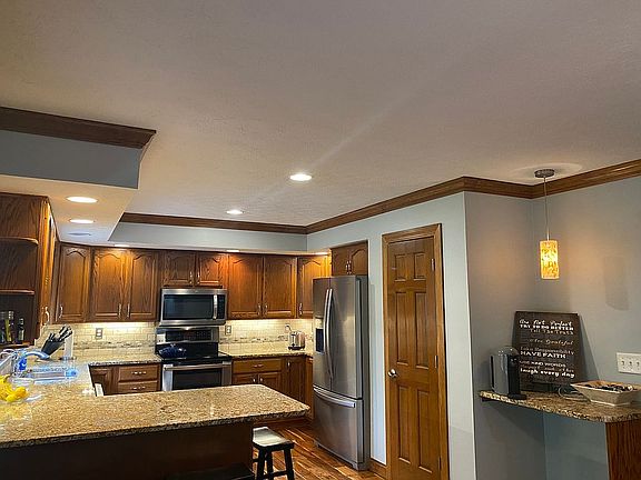 4 bedroom, 3.5 bath, 3900 Sq.Ft. spacious ranch with a fully finished basement. 3 car garage. The remodeled main living space provides an open concept for dining and entertaining. Features hand scraped acacia hardwood flooring throughout. Stainless steel appliances, granite counters with a travertine backslash. Kitchen area opens with French doors onto large cedar screened in patio. Master bedroom includes a soaking tub and walk in shower. Two additional bedrooms upstairs with ample closet space. The finished basement includes two recreational areas-as well as a kitchenette with sink, two additional rooms with a full bath. The home is on a quiet cul-de-sac. Backyard with mature trees and space for a variety of outdoor activities/recreation. You do not want to miss this one! No HOA! Open-house 8/9/20 1-4Pm