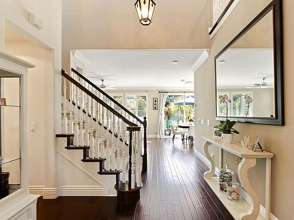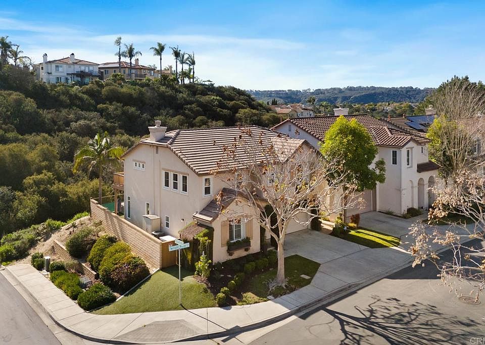 The old adage "Location, location, location" couldn't apply more to this RARELY AVAILABLE gated Greenbrier home. It's been 18 months since a home was on the market in this lovely enclave. The original owner is moving on and now is your opportunity! With over 2000 acres of Carmel Valley Preserve as your playground, this home is perfect for those who value the great outdoors. Make your way to Torrey Pines without ever getting on the freeway! Walk to Ocean Air Elementary! The 4-bedroom, 3-bathroom home spans 2,106 square feet and sits on a premium corner lot with a serene canyon outlook. Just footsteps from the front door lies the Carmel Valley Preserve, offering more than 2,000 acres of protected open space with miles of scenic hiking and walking trails—an exceptional extension of your everyday living environment. The home is also less than a two-mile bike ride to the iconic beaches and coastal hiking trails of Torrey Pines State Natural Reserve, and just five minutes from the charm, dining, and coastal lifestyle of downtown Del Mar. The flexible floor plan includes a full bedroom and bathroom on the main level—ideal for guests, extended family, or a home office. Interiors are enhanced by new carpeting, stone countertops, and abundant natural light throughout. A spacious loft features extensive built-in cabinetry and a dedicated desk area, creating an ideal space for work, study, or relaxation. The oversized primary suite is a true retreat, complete with a walk-in closet and a contemporary, spa-inspired bath. Step outside to enjoy a newly constructed private balcony overlooking the canyon—perfect for morning coffee or evening sunsets. The beautifully landscaped backyard offers privacy and a tranquil setting for outdoor living and entertaining. Additional highlights include a paid solar system, new appliances throughout, under-sink water filtration system, built-in garage storage, custom millwork, all within a pristine gated community with low HOA. Ideally located near Pfizer headquarters, One Paseo, University Town Center, and the renowned Torrey Pines Golf Course, this home offers exceptional access to San Diego’s premier dining, shopping, employment centers, beaches, and outdoor recreation.