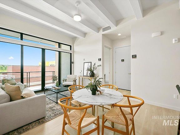 *5.99% 30 year fixed rate available on this unit through seller's lender (6.058% APR)*. Please ask agent for lender's details. Save hundreds per month. If you like natural light this unit is for you! Located on the top floor with big windows and sliding glass doors this unit receives amazing natural light and has good views too looking towards the Boise River. Nicely located within the building near sparsely occupied common area amenities makes space feel expanded. Step right out your door and fire up the BBQ in the rooftop outdoor kitchen or get cozy around the social room fire place. Allow your guests to use the common area restrooms. Step outside to soak in the differing and amazing views. This two bed two bath unit is all single level with elevator access to the third floor. Ceilings are tall and have beams running across them. Cream and honey colors. Quality materials. Acoustically engineered building creates a quite peaceful atmosphere. Thank you for viewing!