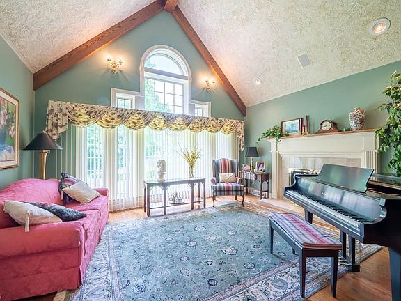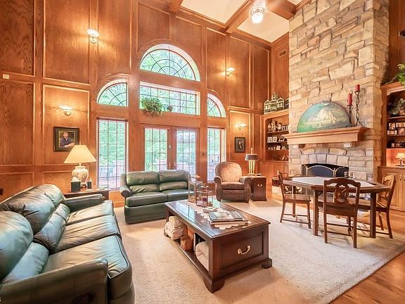 Custom built by original owner. This Brick and Cedar 5000 + sqaure foot Georgian Colonial is secluded on 6+ acres of Wooded Privacy. Quality abounds from the double wide concrete circular driveway to the 2 story Marble Foyer. First floor features living room with vaulted ceiling, formal dining room, enormous kitchen, office, master ensuite bedroom, plus spectacular great room with 18 ft. beamed ceiling, solid wood walls, wet bar, and gorgeous floor to ceiling stone fireplace. Front and rear staircase access 2nd floorguest suite & bedrooms 3 & 4, plus huge Bonus room. Full 13 course basement has access from the 3 car Heated garage. Call for Private Showng.