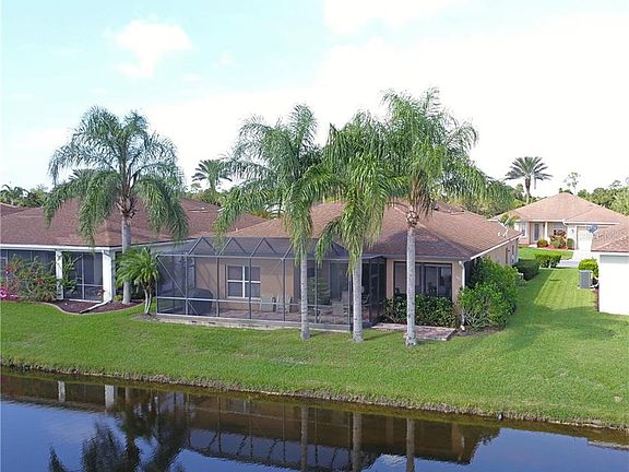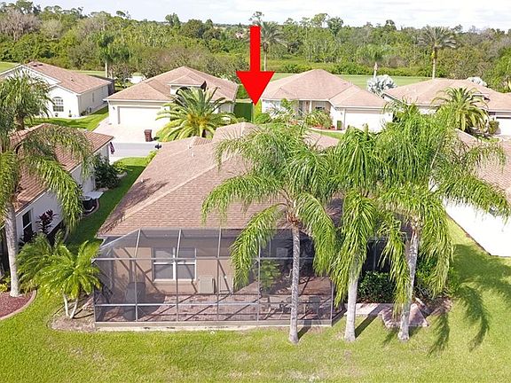 Price Reduction!!!! Furniture Included!!!! CDD Bond Debt PAID IN FULL!!! If you want a Pond View, this beautiful Home is for YOU!!! The Extended Veranda/Screen Room is fabulous for Florida living!!! This Home is Located at the perfect location on the Pond, you look at the full length of the Pond and enjoy the Sunrise. The Upgrades in this 3 Bedroom, 2 Bath, 2 Car Garage Very Popular Biscayne Floor Plan Home include: Granite Counters in the Kitchen, 42" Wood Cabinets with Crown Molding, Stainless Steel Appliances, Island Buffet, Ceiling Fans/Lights, Large Tile, Glass Shower Door in Master Bath, Upgraded Carpet in Bedrooms, Leaded Glass in Front Door which is Screened in, French Doors into 3rd Bedroom/Den, Landscaping with Palm Trees, Window Blinds, Pavers in the Veranda, Section of Veranda has Windows, Windows in Overhead Garage Door, 2nd Water Meter so you do not pay Sewer on Irrigation Water, and Furniture, Dishes, Some Pots & Pans, Silverware, Linens, New Vacuum Cleaner, 2nd Refrigerator in the Garage, Tile Cleaning Machine, Rug Cleaning Machine, 2 Shop Vacs, all Pictures on the Walls (except Personal Ones), and Golf Cart Convey with the Purchase of this Home. One Year Free Golf included with the Purchase of this Home.