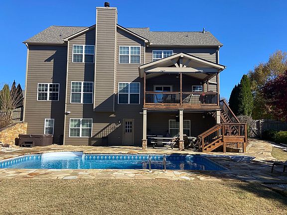 Buford City Schools! Welcome home to enjoy 5 bedrooms, 5 full bathrooms with finished basement in sought after Highland Creek neighborhood. Main floor offers a spacious, open floor plan with two story foyer, formal dining, eat in kitchen, family room, plus two additional rooms and a full bathroom. Upstairs you have a laundry room and four bedrooms with three bathrooms, including a newly renovated main bathroom. Basement includes huge rec room, three additional finished rooms, full bathroom and large workshop. Step out back to your own piece of paradise with a salt water pool, flagstone patio, multi- level covered porch and additional storage shed. Will pay 2.5% buyer agent fee.