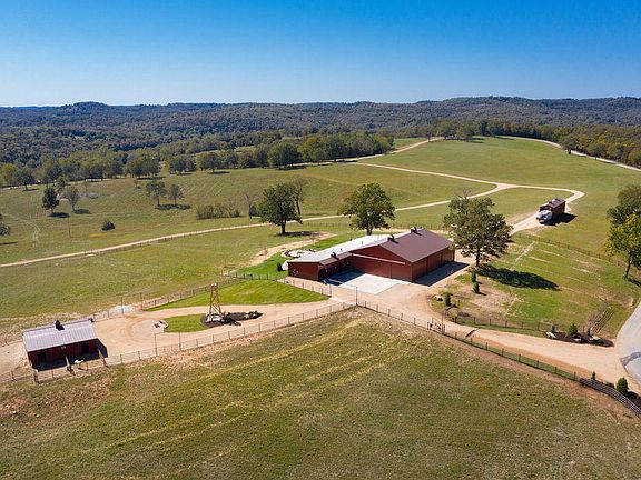 Spectacular 520 acre Ranch & 1 Million Barndominium with Bull Creek Frontage! This unique and special property will knock your socks off! Upon entering the privacy gates, you will be welcomed by a newly constructed masterfully designed 60 x 80 barn & Bardominium with modern features & flair! This home is unlike anything you have ever seen before with an open floorplan, elegant kitchen with Bosch appliances, great room with fireplace, exquisite master suite with the largest custom built master closet in Southwest MO, heated outdoor kitchen/entertainment area, 100' covered front porch, gorgeous water features, firepit area, impressive landscapping and so much more! This property is a hunters paradise that also includes a 1 bed, 1 bath guest cabin, a 1 one bedroom loft bunk house, a 4 stall horse barn with tack room, run areas & heat & air, horseback riding trails & wildlife galore, 8 redneck deer stands, 9 deer cameras through out the property, RV Barn, 5 outbuildings, a skeet shooting station, Spring House, 2 wells, all new fencing throughout and so much more! Don't miss this once in a lifetime opportunity!