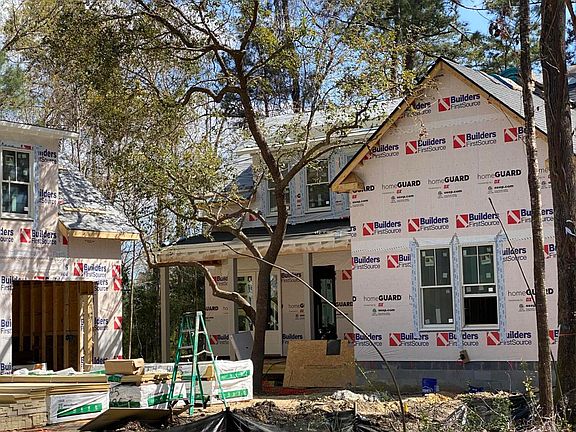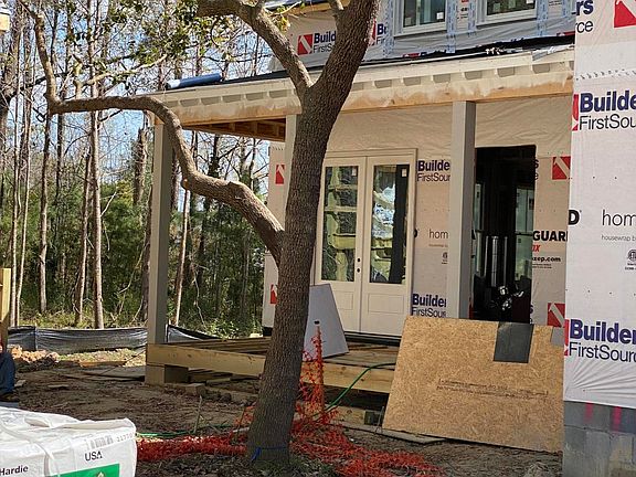 THE PRESERVE IN POPLAR GROVE Under Construction COASTAL COTTAGE. with board and batten Hardie Plank siding, architectural shingles with metal roof accents and Anderson windows. Interior has 3 Bedroom, 3 1/2 bath. 1st floor has Primary and Secondary beds with baths; Bright, open and spacious living area with custom kitchen 36'' Gas range, double 36'' refrigerator, gas tankless hot water and gas fireplace. Hardwood floors or LVP equivalent and a custom trim package to accent the 10' ceilings. beautiful open window filled sunroom, large 1/2 bath and spacious laundry room, complete the 1st floor. Second floor features 3rd bedroom with bath and additional living space and office area. Detached 2 car garage with rough framed 2nd floor, (not finished) option for 4th bed, bath, in-law suite etc.Enjoy the ample covered and uncovered exterior living space overlooking the pond in the rear. Gated neighborhood, loaded with amenities. Stroll down to the community pool, boat house and dock on Rantowles Creek just an 1/8 mile away. Tax estimate based on primary occupancy. Renderings are illustrations. Finishes will be similar. Hvac gas heat, electric cool, ceiling fans, family, sunroom. light fixtures, pendants, vanity lights etc Irrigation included