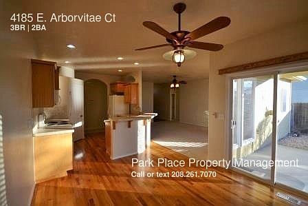 SCHEDULE A SHOWING ONLINE AT: showmojo.com/lh/4e085db084 This well appointed single level, split bedroom floor plan offers privacy and ease of living with 3 spacious bedrooms, 2 bathrooms, a bonus office/den, and a 3 car garage. Warm colors, rich wood highlights and lots of natural light throughout create a welcoming atmosphere. The kitchen has ample counter/storage space and is open to the living and dining room with a wrap-around breakfast bar, perfect for serving meals or entertaining. The fully fenced yard is well manicured with lush landscaping, cement curbing and a great view of the foothills. No back yard neighbors and direct access to acres of BLM land for hiking or biking. This home has the exceptional quality you have been looking for and you'll love the contemporary design with elegant finishing touches. Call 208-261-7070 for additional information. You can also fill out an application on our website at www.parkplaceid.com *This information is deemed reliable but not guaranteed. Information is subject to change*