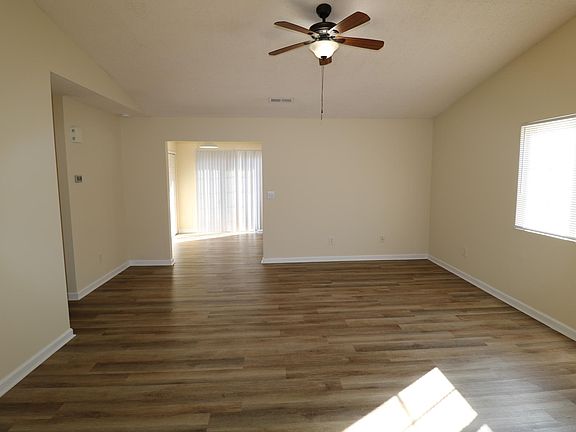 Bright and inviting 3BR/ 2.5 bath home available now. Single story home nestled on a cul-de-sac. Oversized living room with cathedral ceiling and fan. Eat in kitchen with SS refrigerator, spacious pantry, laundry hookups, and sliding glass doors to the back yard. Over sized den offers separate living or office space, with powder room. Hallway bathroom features shower/ tub combo and beautiful new vanity. Primary BR has a walk in closet, en suite, and ceiling fan. LVP in the LR, bonus room,and kitchen. All electric. No pets. Renter is responsible for power, water/ sewer and lawn care.