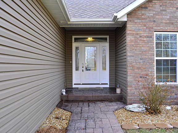 There's no better location than this! Located edge of Bolivar on a little over two acres. This custom built home has spacious open floor plan offering formal LR, hand scraped oak hardwood flooring, attractive gas fireplace, kitchen with wrap around bar, custom cabinetry, gas range, double oven and dishwasher,laundry room with pantry, huge master suite with walk-in closet, master bath features separate vanities, oversized walk-in shower and tub. Second bedroom includes ceiling fan and large closet. Guest bath has porcelain tile flooring, 36'' cabinetry and tub/shower combo. The lower level has huge family room, bath with walk-in shower, two bedrooms, storm shelter room, unfinished mechanical/storage room and extra storage area. Magnificent view, decorative retaining walls and landscaping.