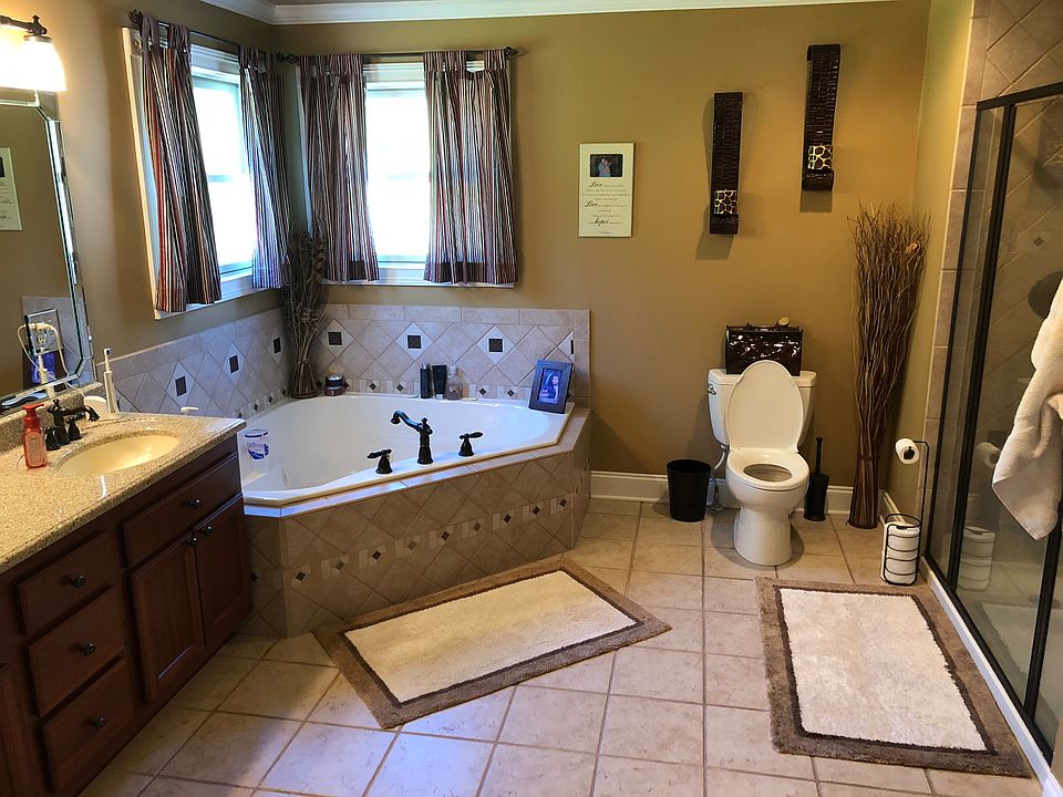 Beautifully updated home with granite countertops, stone fireplace, Brazilian cherry hardwood floors, high ceilings and a finished walk out basement. The floor plan features 4 bedroom suites on the main level all with walk in closets. Split bedroom plan. Huge laundry/mudroom with staircase leading to finished loft space perfect for an office or reading/den retreat. Floored attic storage is accessible from this area. The master bath features a corner bathtub, separate vanities and a large shower with double shower heads. The walk in closet has custom cabinetry. The finished walk out basement has areas for game tables or a theater. A room with new tile floors provides a changing area and a half bath has been added for convenience from the beautiful pool area. A Trex deck with new railings has been added as well and provides access to the pool area from the great room or master bedroom. A new detached 2 car garage plus an additional parking pad and paved driveway provides room for 4 cars.