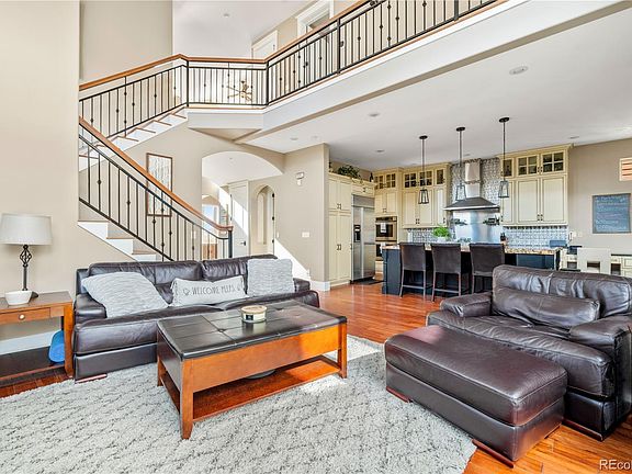 **MAJOR PRICE IMPROVEMENT** Welcome home to this IMMACULATE and RARE custom home on a corner lot located in the coveted Bradburn Village community! Sweeping mountain views from the front porch, facing protected open space, Big Dry Creek Trail System access across the street, and blocks from shops, including Whole Foods, dining, and great schools. As you enter the home, you will be met with soaring ceilings, filled with natural light, and an elegant entry with travertine and onyx. The beautiful detail throughout the home will not go unnoticed, from the Juliet balcony, wrought iron railings, crown moulding, paneled formal dining room and hallway, to the hardwood floors made of bamboo, hickory, and Hawaiian Koa. Open floor plan, with a FLAWLESS, CLEAN, and FUNCTIONAL kitchen: commercial-grade stainless steel Thermador professional range and double ovens, built-in GE Monogram fridge, custom tile backsplash, large slab granite center island, butler's pantry and huge walk-in storage pantry. Enjoy a peaceful retreat off your primary bedroom with a custom closet and spa-style bath: jetted tub, roman waterfall, and dual shower heads. When you need to escape head to the fully finished basement with high ceilings: media room, game room, wet bar, sauna, and gym/bedroom. The exterior of the home features private patios, new Trex deck, and a wrap-around porch. Community amenities include a pool, clubhouse, and tennis courts. A must see! For more information, video, and Matterport, please visit www.custombradburn.com.