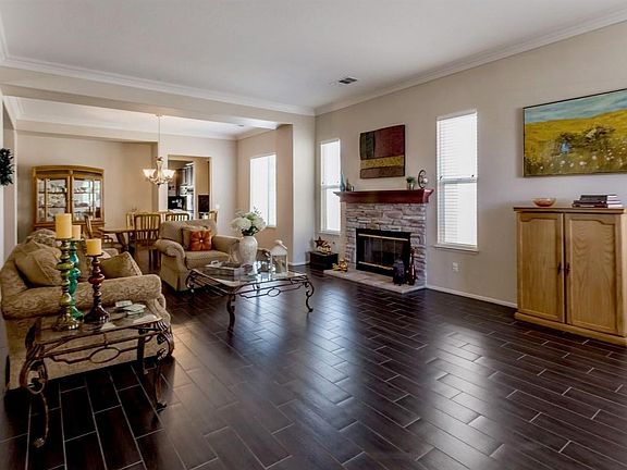 Fantastic Portofino Estates large single story home on a 14,000 square foot lot. This great home has all the bells & whistles, double door entry leads to a magnificent grand entry. Tile flooring (Medallion inset) This model features the grand living room floor plan next is the formal dining room for those family dinners. The large family room has a gas fire place and is adjacent to the FANTASTIC kitchen with granite counter tops, center island bar. Stainless steel appliances, built in microwave, double oven and a 5 burner range top. (Also a Butler's Pantry complete with a wine fridge) The master bedroom suite has a large walk in closet, double sinks, separate tub and shower. The back yard is fully landscaped with a huge covered patio, stamped concrete & curbing. Please see photo tour