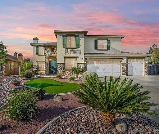 Magnificent Entertainers Home... Located in the beautiful gated community of Portifino Estates. This enormous home contains 6 bedrooms, 2 downstairs. One has walk in closet the other is a Bedroom suite that has own private bathroom with stone tiled shower and new sink and vanity. Includes formal living room with plantation shutters and fireplace. Formal dinning room that leads in to the Gorgeous kitchen with granite counter tops and Stainless appliances and walk in pantry. Open great room with fireplace that opens up to the Back Yard. Upstairs contains 4 bedrooms. 2 bedrooms share Jack and Jill bathroom. bedroom 3 has its own private bathroom. The large primary bedroom has extra large walk in closet. The primary bathroom consists of beautiful stone tiled shower, large soaking tub and 2 new sinks and vanities. The other end of bathroom has private bonus room. Great for a small gym or gaming room. The beautiful backyard has an oversized pool and spa that contains waterfall and fountains Lots of concrete decking around pool for all those great pool parties. For that outdoor cook there is a wonderful outdoor B.B.Q and cooking area with bar. The covered patio is the length of the home. There is a gated RV/Big toys area. This home offers so much, come see for yourself.