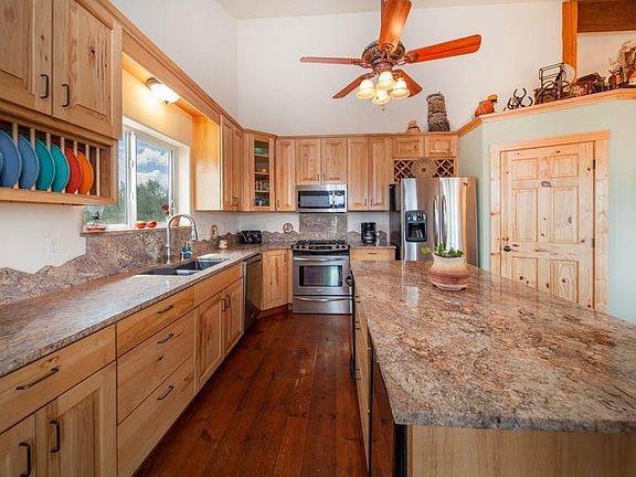 Aspen Peak Ranch holds ideal equestrian living between Breckenridge and Buena Vista. Enjoy privacy and sweeping views at this two-story ranch home conveniently accessed from county-maintained blacktop roads. The gourmet kitchen and open design are warmed by fire stoves and rustic wood touches. Watch over the 1,728 sq. ft. horse barn at night or stargaze from the hot tub from the main suite. Scenic equestrian trails, fishing and skiing are nearby. RV pad and electrical hook-up are enabled.