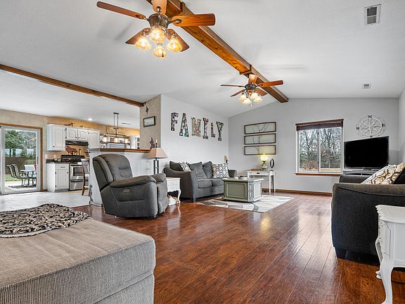 A secluded haven is waiting for you! This welcoming 2,300-square-foot ranch-style home is perfectly positioned on a 1.7-acre corner lot in the picutresque Forest Ridge subdivision just one mile north of Citizens Memorial Hospital. Designed to blend easy living with comfort, this home offers exquisite features and a private, serene setting. As you arrive, the paved, curving driveway welcomes you to this perfectly situated home, surrounded by lush landscaping and well maintained subdivision roads, ensuring smooth access without the hassle of gravel. The single-level design showcases a zero-entry slab foundation, ideal for effortless living. From the moment you step inside, the vaulted great room greets you with natural light and seamless flow into the tiled kitchen, dining room, and the inviting courtyard patio beyond. The kitchen scores 10 out of 10, featuring timeless black granite countertops, a large wood top center island with a separate prep sink, and abundant counter space and cabinetry, making it both functional and beautiful. Adjacent to the kitchen, a well designed laundry, mudroom and half bath connect directly to the oversized three-car garage large enough for a 3/4 ton truck. The primary suite is a true retreat, offering a spacious bedroom with an en-suite bathroom, walk-in shower, and walk-in closet. Its private screened porch overlooks the backyard and pool, creating a serene private porch space. Two additional bedrooms are situated at the east end of the home, sharing a fully renovated hall bathroom complete with a modern soaking tub and elegant tile surround. A large flex space, currently featuring an antique armoire for closet access, can serve as a fourth bedroom, home office, or second living area. This versatile room includes a cozy propane fireplace and overlooks the courtyard patio. The outdoor living spaces are a highlight of this property. Multiple porches and patios plus an above group make outdoor living ideal in this private setting.