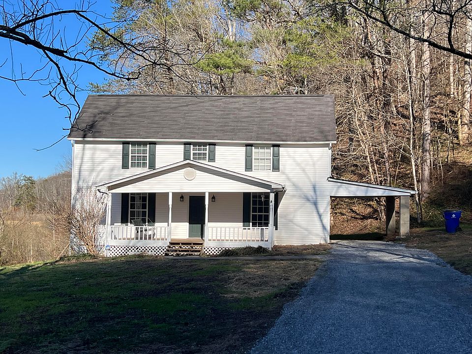 Creek-side farmhouseFront porch swingFresh paintBrand new hvac unitWooded backyard viewNew carpet and tileUpdated light fixtures
