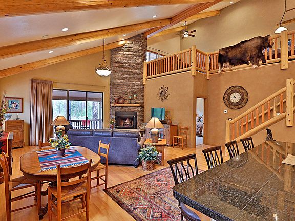 Maintenance-free mountain living bordering the Apache-Sitgreaves National Forest. As you enter the front door you are greeted by vaulted ceilings, log beams and a massive stacked stone fireplace. The great room, loft, master bedroom and deck have incredible long-range views of nothing but forest! High-end finishes throughout include granite countertops, slate and tile accents, log railings stainless steel appliances, new A/C, new carpet and a spacious loft provides a second living/rec room (pool table included!). This property is meticulously maintained and ready for your family gatherings. HOA is responsible for all exterior & landsacpe maintenance, dwelling insurance & snow removal.