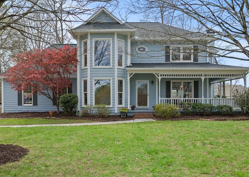 Charming John Weiland 4 bedroom, 3 full bath home with wrap-around front porch on a serene cul-de-sac location! As you step inside, pristine hardwood floors grace the entire main level. Oversized formal dining room with bay window. Formal living room opens into the fireside family room with built-in bookshelves. Access to the front porch through the family room as well as to the expansive back deck that is perfect for entertaining! The heart of the home kitchen is a chef's delight with white cabinetry, granite countertops, stone backsplash, stainless steel appliances, and large pantry. Natural light fills the breakfast area overlooking the park-like flat backyard. There is even a FULL BATH on the main level! The Primary suite with hardwood flooring is a true retreat featuring a sitting area which is the perfect place to read or relax. A luxurious spa-like bathroom with tile flooring, garden tub, separate shower, dual sinks, and shopper-sized closets. 3 large additional bedrooms upstairs. One bedroom with separate vanity area to access to secondary guest bathroom. Brand NEW ROOF, GUTTERS, WATER HEATER, NEWER HVAC systems and crawlspace encapsulation. The backyard is truly a nature lover's paradise with mature landscaping and a storage outbuilding for garden or yard tools and one of the largest lots! This remarkable property in Westchester community with a Roswell address in Cobb County. Desirable active swim/tennis neighborhood that is close to shopping, dining and award-winning schools!