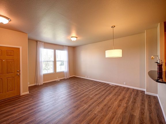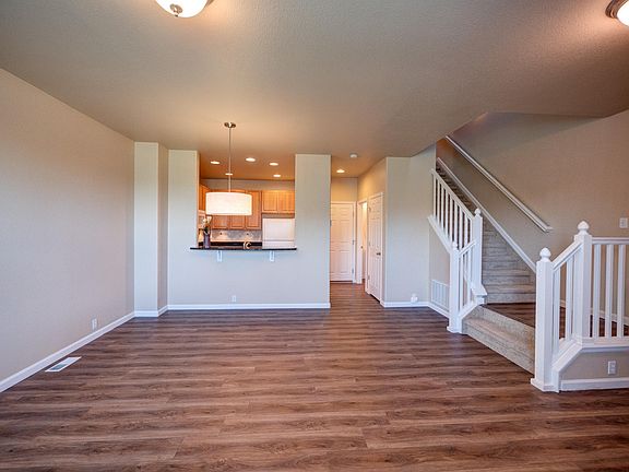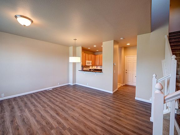Upgraded and truly beautifully-maintained townhome with luxury vinyl plank flooring throughout, slab granite in the kitchen and baths. Airy 9' ceilings on the main & a vaulted primary suite. Large living room and bedrooms. Primary suite easily fits a king sized bed. Very private with an open view out the front toward the manicured community green space. Upper-level laundry closet with washer and dryer included. Central air conditioning, ceiling fans, oversized 2-car garage that accommodates larger trucks. Large crawl space that is excellent for long-term storage. Unit is as good as the photos look! Great open floor plan and a premium unit. 1-year minimum lease. 750 minimum credit score required of each adult applicant / all adults who will be living in the property. Last month's rent due at time of lease. No pets, non-smokers / non-vapers only.