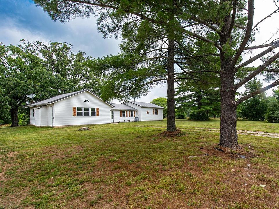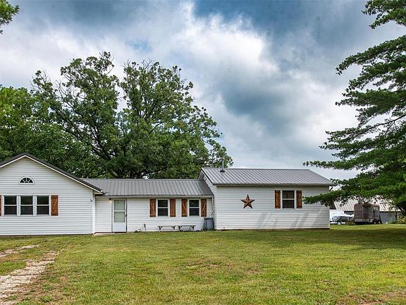 Hard to Find!!! Make Your Appointment Today!! Great Opportunity!!! Ranch Home & 5 acres m/l setup for a few horses, with a couple pastures ready for grazing, barns have electric and water, separate driveway entrance to barn, small pond, lots of shade trees, huge patio for outdoor BBQ's, Ranch home has 3 bedrooms 1 baths, needs some TLC, master bedroom has hardwood floors, stone fireplace, Steal Roof installed just over a year ago, 5 acres is gently rolling, lots a mature trees, mostly open ground/pastures. TAN & BLUE PORTABLE SHEDS ARE NOT INCLUDED IN SALE