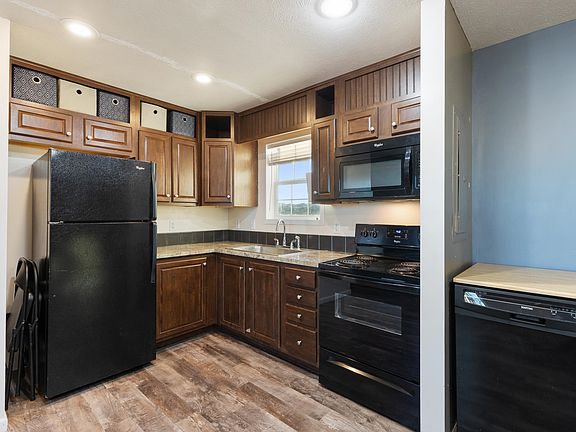 This home features 4 bedrooms, 3 full baths, and a 27x24 gable-roof carport with extra parking. The stylish kitchen showcases modern colors, beautiful flooring, and a 14x8 dining area. The spacious living/family room opens to a 16x12 deck, overlooking a large fenced backyard—ideal for relaxing or entertaining. Located on 0.50 acres in an established park, lot rent is just $525/month, covering water, sewer, and a secure mailbox. Recent updates include a new roof (2020) and siding on the North side. Appliances—dishwasher, refrigerator, stove, and window coverings—are all included. Move-in ready with great indoor and outdoor space—don’t miss it! Listed by Gage Zieske - Keller Williams Realty Black Hills, Spearfish (605) 219-3935 and Co-Listed by Madison Reeves, Keller Williams Realty Black Hills -Spearfish (605) 569-9019.